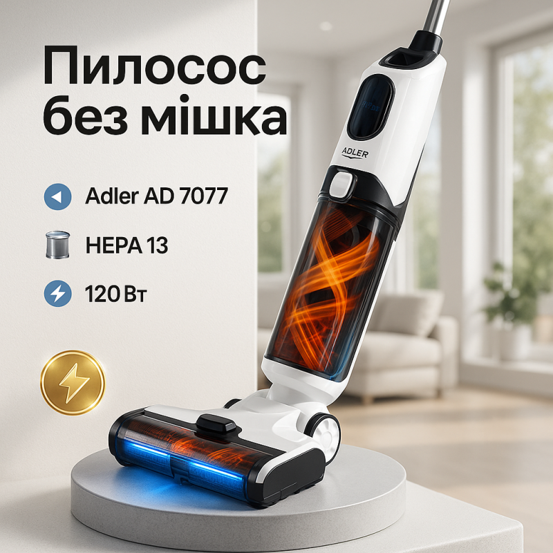 | Назва | Акумуляторний ручний вертикальний пилосос Adler AD 7077 120Вт для сухого та вологого прибирання |