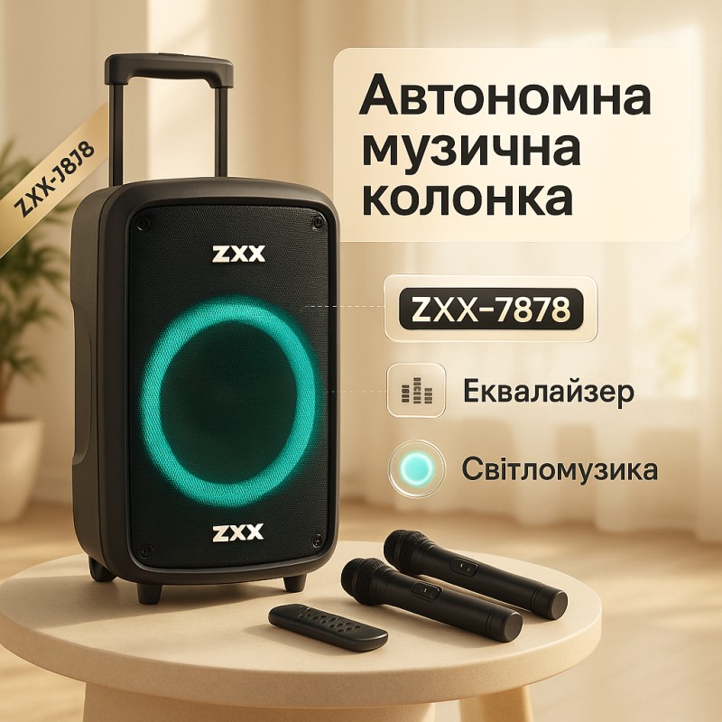 | Назва | Акустическая переносная колонка ZXX-7878/ 8161 600 Вт 15" 72х42х35см |