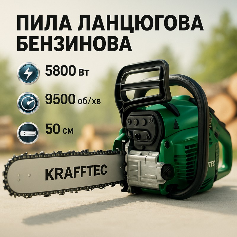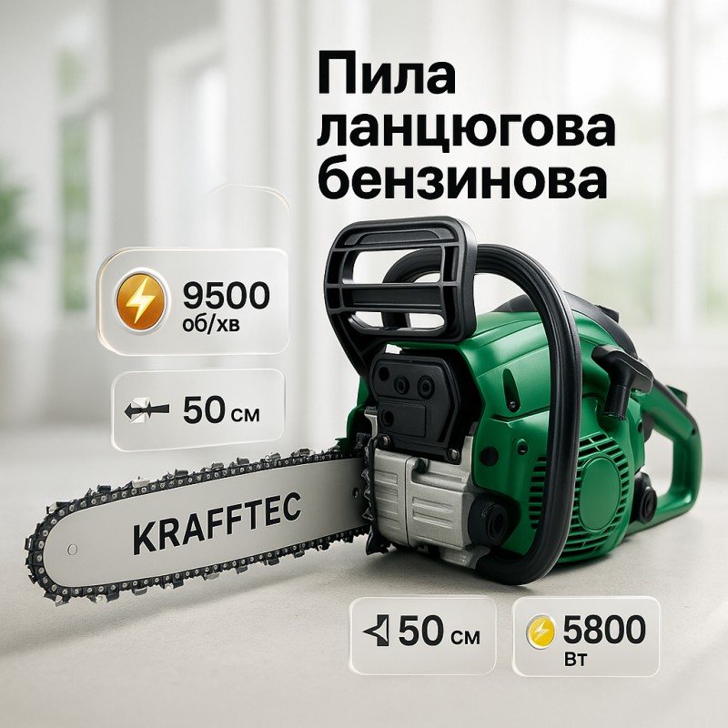 | Назва | Бензопила цепная 45см KRAFFTEC 5800, Пила цепная бензиновая |