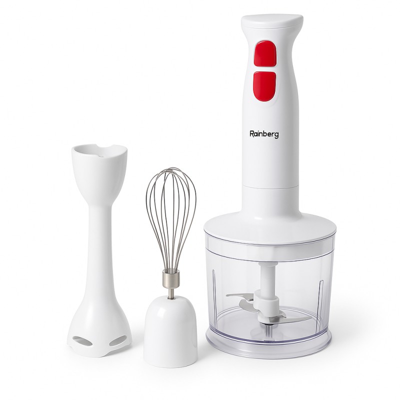 | Назва | Блендер 3в1 Rainberg RB-2243 500W погружной блендер измельчитель для молочных коктейлей. Цвет: белый |