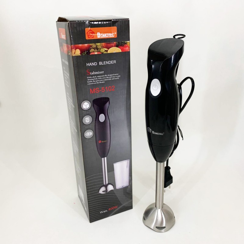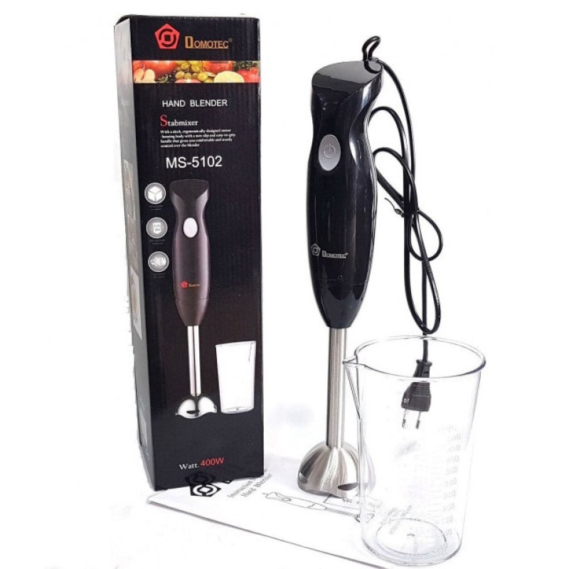 | Назва | Блендер занурювальний ручний з чашею DOMOTEC MS-5102 400 W, Красивий занурювальний блендер для дому |