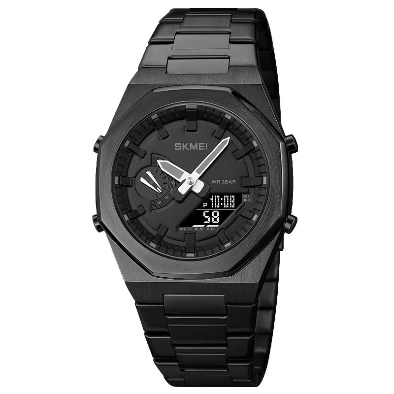 Часы SKMEI 1816BKBKBK — это современное воплощение урбанистического минимализма в глубоком черном цвете. Благодаря комбинации аналоговой индикации и цифрового дисплея эта модель выглядит стильно и технологично. Вся конструкция – от корпуса до браслета – выполнена из матового металла, что создает впечатление целостности и строгости. Этот аксессуар легко сочетается как с деловым костюмом, так и с кэжуал образом.