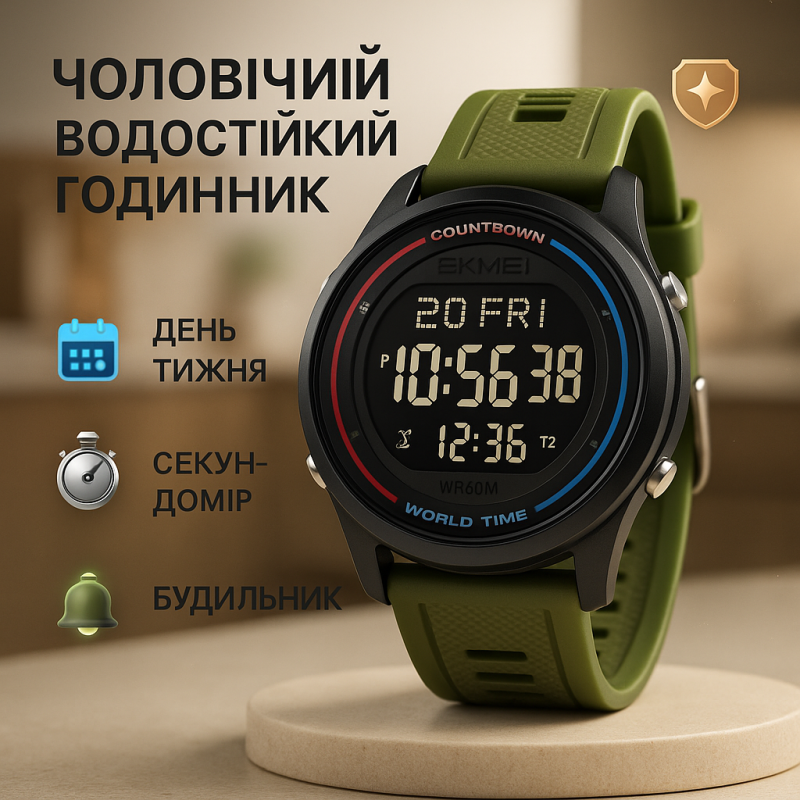 Эти часы предназначены для пользователей, которые требуют больше, чем просто показ времени. SKMEI 2348AG оснащен двойным временем, секундомером, таймером, будильником, мировым временем, календарем и подсветкой. Благодаря водозащите до 50 м модель не боится дождя, влаги или тренировок на свежем воздухе. Идеальное решение для спорта, путешествий и повседневной носки.