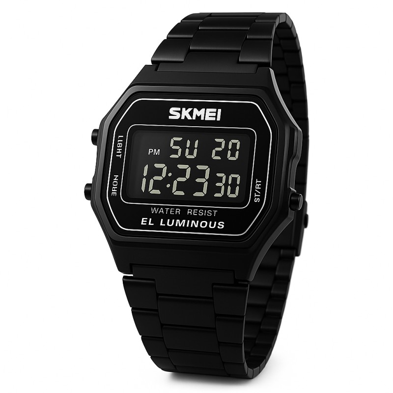Часы SKMEI 1647BK – это стильный аксессуар в классическом ретро-дизайне с современной функциональностью. Его компактный корпус в сочетании с металлическим браслетом черного цвета выглядит сдержанно и элегантно, что делает эту модель отличным выбором как для офисного стиля, так и для повседневной носки. Благодаря удобному цифровому дисплею и подсветке, часы остаются информативными даже в темное время суток.
