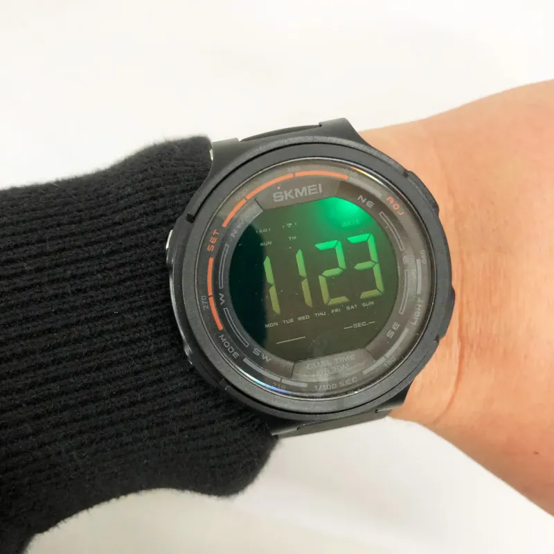 SKMEI 1841BK оснащен полным набором функций для повседневного использования: двойное время, будильник, дата, день недели, секундомер, LED-подсветка, таймер и 12/24-часовой формат. Корпус водонепроницаем до 50 метров, что позволяет использовать часы в спорте или на природе без страха перед дождем или водой. Надежная конструкция и удобное управление кнопками делают эту модель универсальным аксессуаром для любой ситуации.