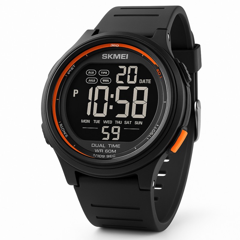 Часы SKMEI 1841BK BLACK — это современная цифровая модель в спортивном стиле, исполненная в черном цвете с яркими оранжевыми акцентами. Благодаря лаконичному дизайну и компактному корпусу часы прекрасно подходят как для активного образа жизни, так и для ежедневного ношения. Эргономичная форма ремешка обеспечивает комфорт даже при длительном использовании, а большой дисплей гарантирует удобное считывание времени и другой информации.