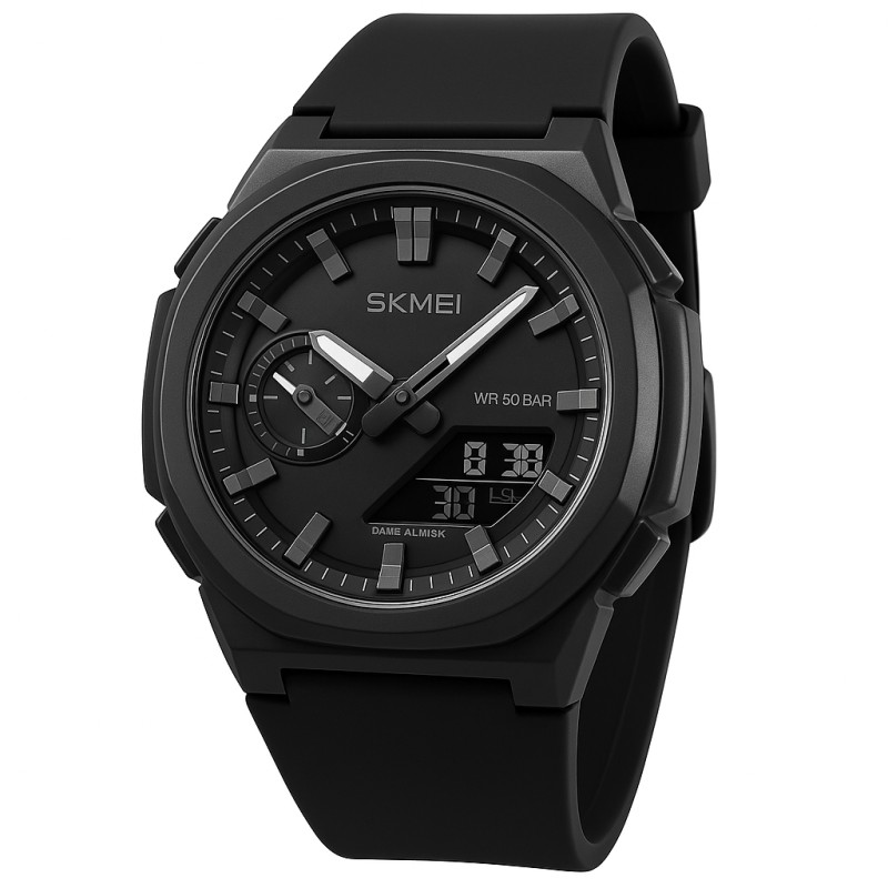 Часы SKMEI 2091BKGYBK — это стильное сочетание минимализма, технологичности и современного дизайна. Модель выполнена в матово-черном цвете с графитовыми деталями, что придает ей сдержанную элегантность. Благодаря сочетанию аналоговой и цифровой индикации, часы выглядят эффектно и одновременно остаются максимально функциональными. Его геометрический корпус с четкими линиями идеально подходит для городского стиля и активного образа жизни.