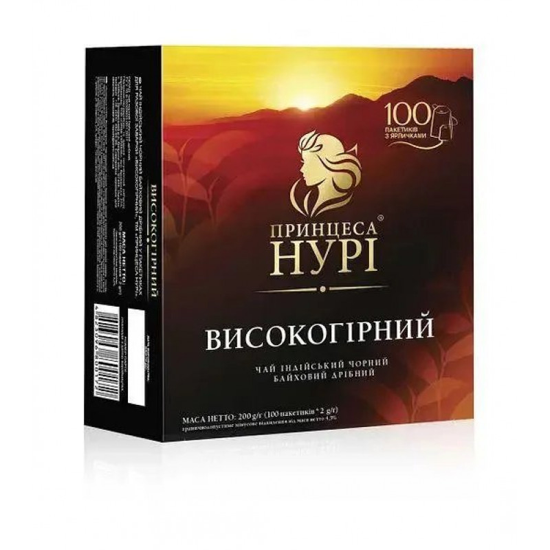 | Назва | Чай чорний Принцеса Нурі Високогірний 100 пакетиків | Індійський, Міцний, З ярличками, Сімейна упаковка |