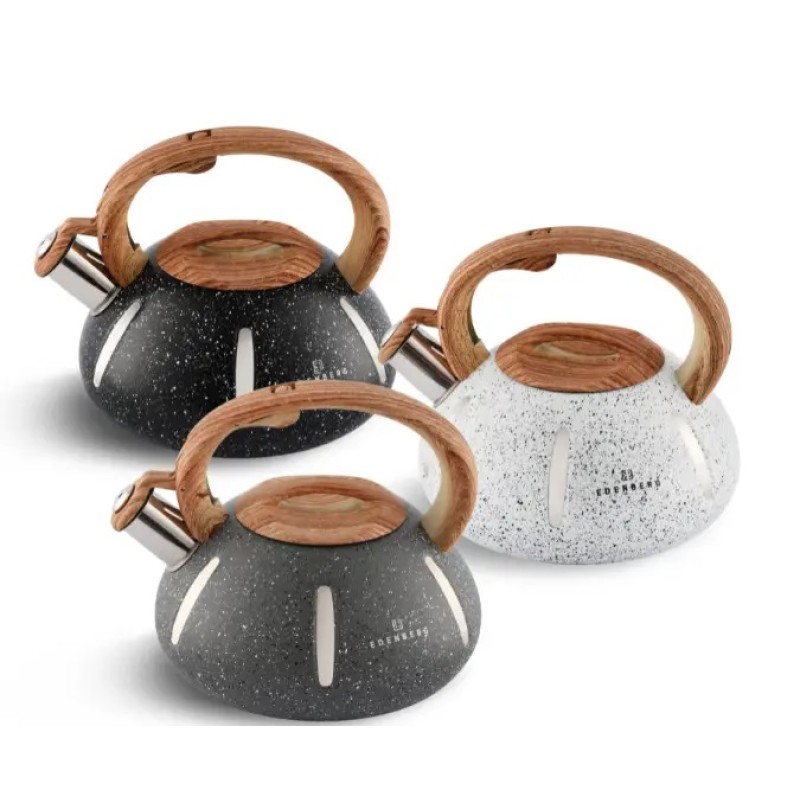 Чайник виготовлений із високоякісної сталі, який не тільки не проіржавіє, а й найголовніше – не шкодитиме вам. Чайник торгової марки Edenberg на 2 літри стане невід’ємною частиною Вашої кухні. Подвійне капсульне індукційне дно в чайнику чудово підійде як для індукційних плит, так газових, електричних або склокерамічних плит. Ручка чайника має ергономічну форму та не нагрівається при використанні чайника, оскільки виконана з дерева. Свисток чайника із нержавіючої сталі відкидається легким натисканням кнопки на ручці. Підходить для всіх видів плит, включаючи індукційні. Об’єм складає 2л, найбільш оптимальний для сім’ї. Унікальною особливістю даної моделі є його дизайн та адаптація до будь-якої плити. Його легко мити та доглядати, завдяки чому прослужить довго на вашій кухні.