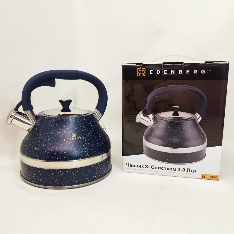 | Назва | Чайник зі свистком Edenberg EB-8856 з мармуровим покриттям та турбо індукційним капсульним дном 3л Blue |