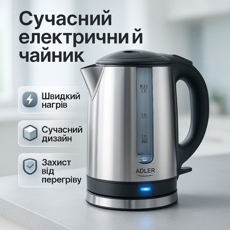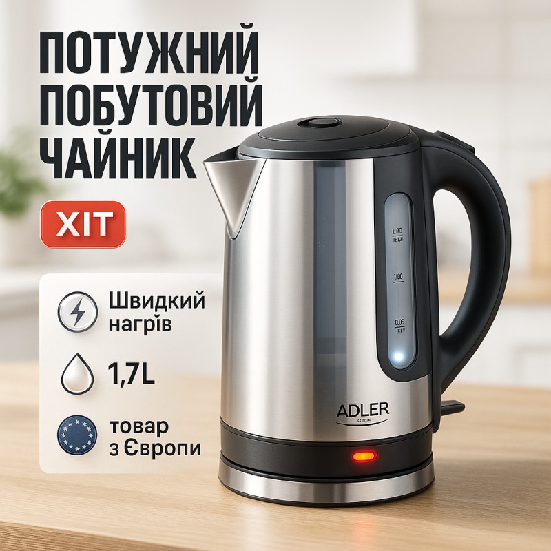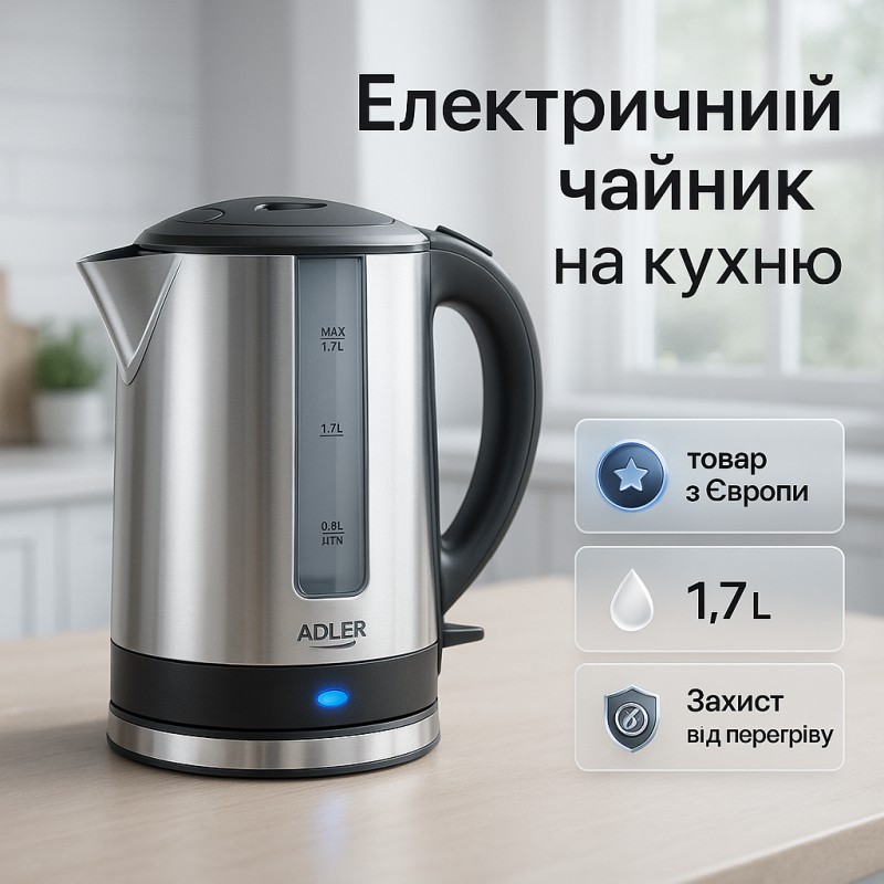 | Назва | Чайник электрический из нержавейки Adler AD 1216 1.7L 2200Вт |