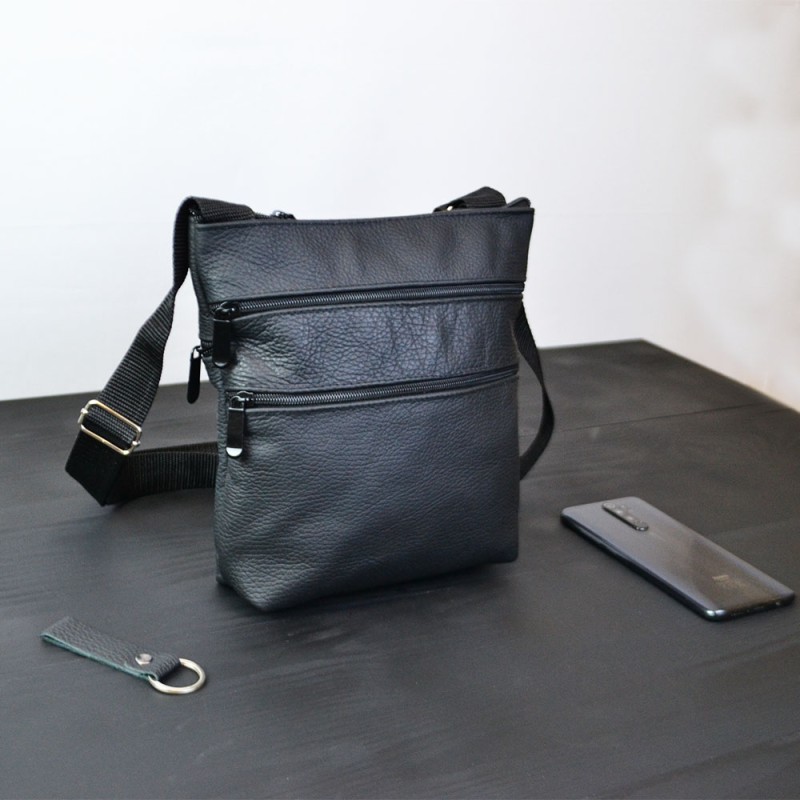 Ця шкіряна сумка месенджер - це ідеальний вибір для тих, хто цінує вишуканий стиль та практичність. Виготовлена з високоякісної натуральної шкіри флотар чорного кольору, вона поєднує в собі елегантний дизайн та високу якість матеріалу.