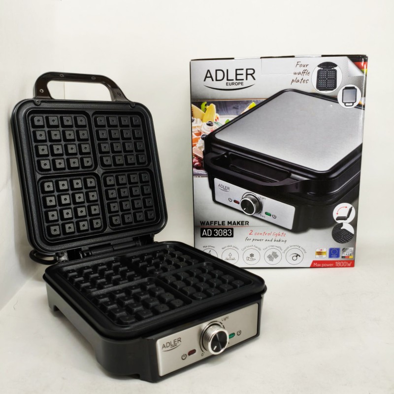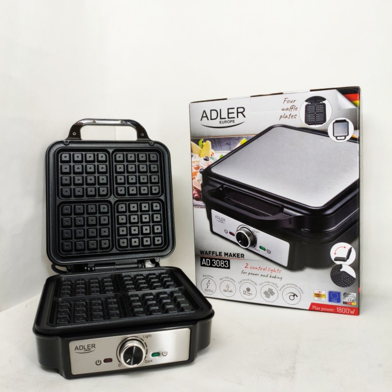 | Назва | Електрична вафельниця Adler AD 3083 з антипригарним покриттям, регулюванням температури та 1800Вт |