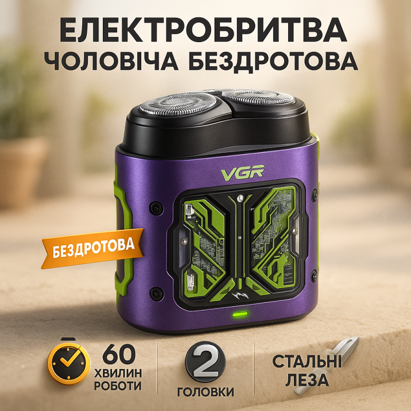 Електробритва VGR V-344. Колір: фіолетовий можна замовити в інтернет-магазині Shtyrman. Перевіряйте модель, виробника, наявність і характеристики перед покупкою.