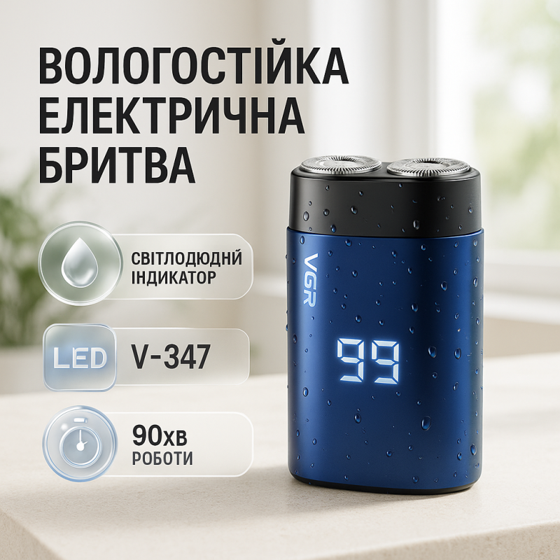 Електроритва VGR V-347 поєднує стильний дизайн, надійність та зручність. Завдяки вологозахисту, LED-дисплею та двом роторним головкам вона стане практичним та сучасним рішенням для щоденного догляду за собою.