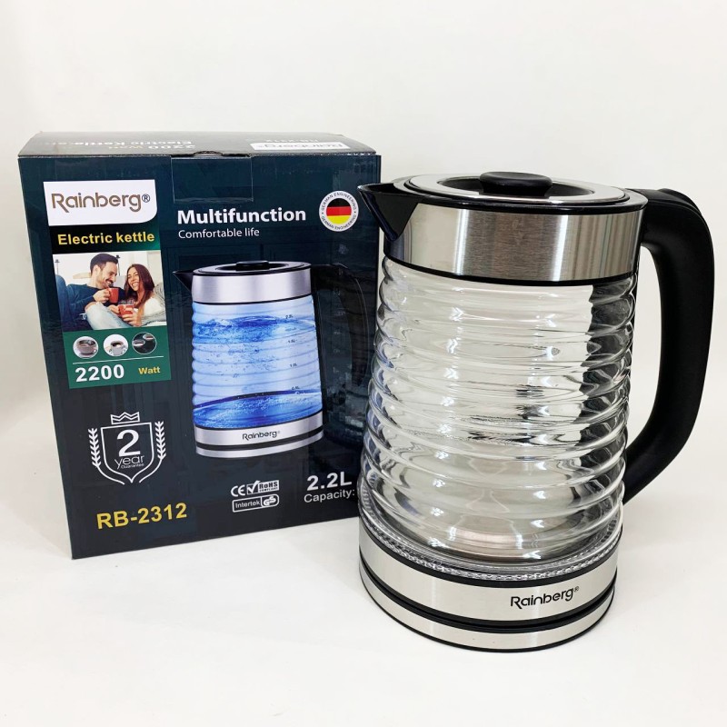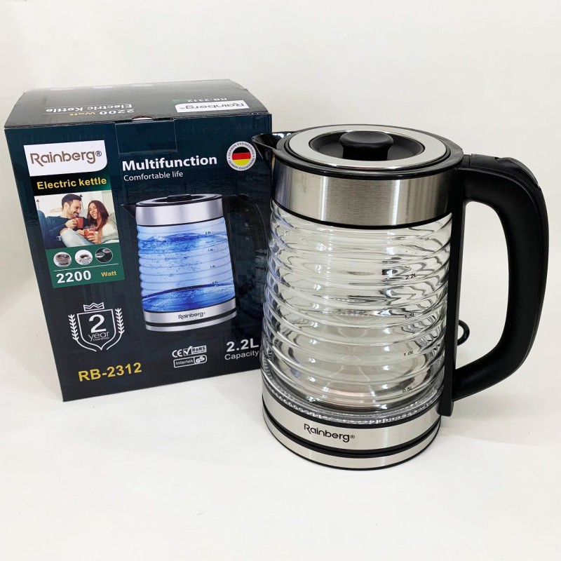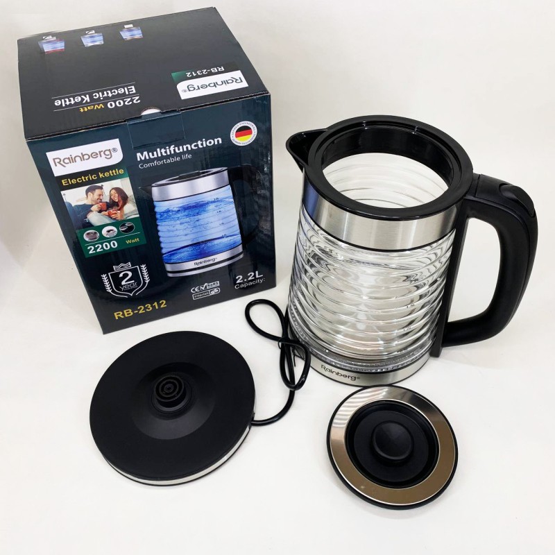 | Назва | Електрочайник Rainberg RB-2312 скляний дисковий чайник 2.2л 2200Вт Silver |