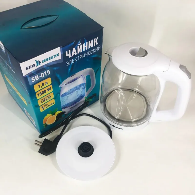 | Назва | Электрочайник SeaBreeze SB-015 1.8 л, чайники с подсветкой, электронный чайник тихий электрический чайник |