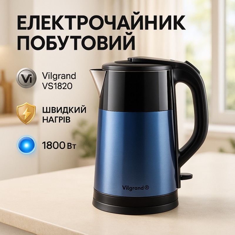 Электрочайник Vilgrand VS1820 1.8л Blue можна замовити в інтернет-магазині Shtyrman. Перевіряйте модель, виробника, наявність і характеристики перед покупкою.