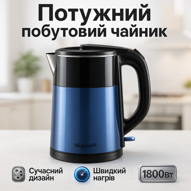 | Назва | Электрочайник Vilgrand VS1820 1.8л Blue |