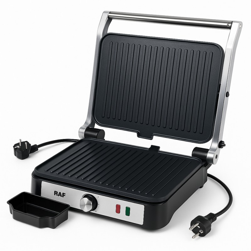 Контактный гриль прижимной электрический с терморегулятором и антипригарным покрытием RAF R-2683 - Хотите в любое время насладиться сочным стейком, хрустящими овощами или панини? Вам больше не нужно иметь кухню, полную бытовой техники. Все, что вам нужно, - это электрический гриль RAF.