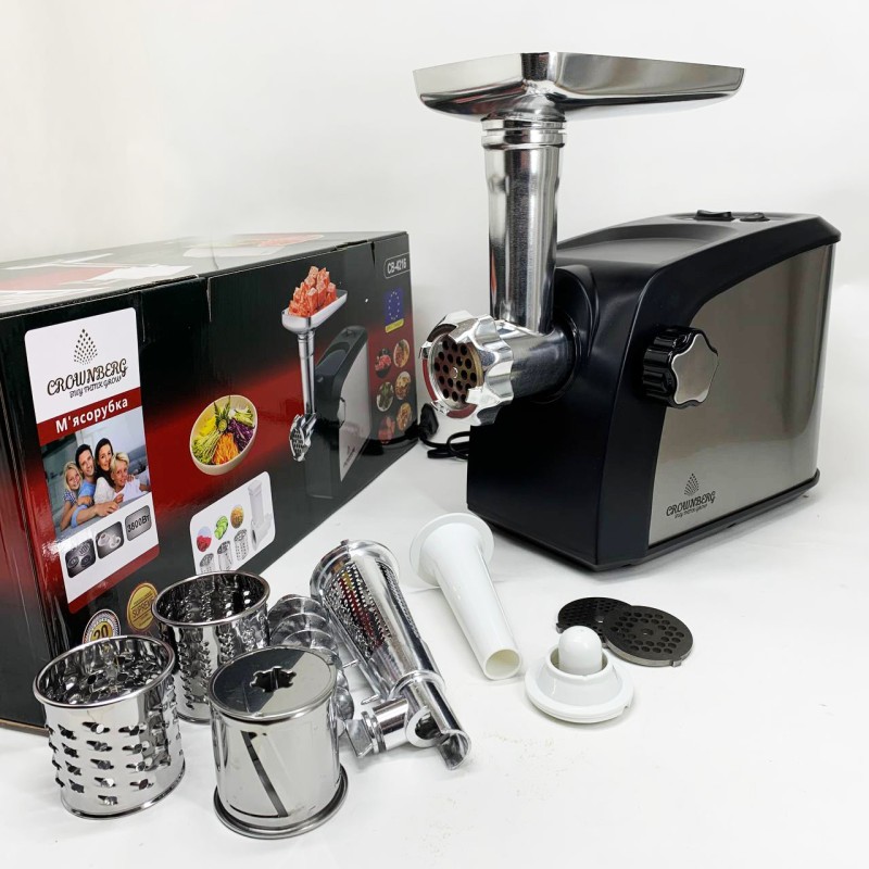 | Назва | Електром'ясорубка Crownberg CB-4216 3200Вт м'ясорубка соковитискач з терками для овочів та реверсом |