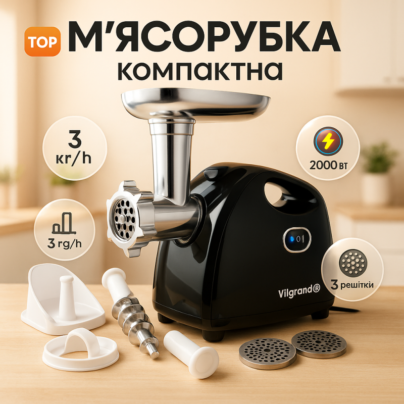 | Назва | Електром'ясорубка ViLgrand V203-BRMG 2000Вт Black |