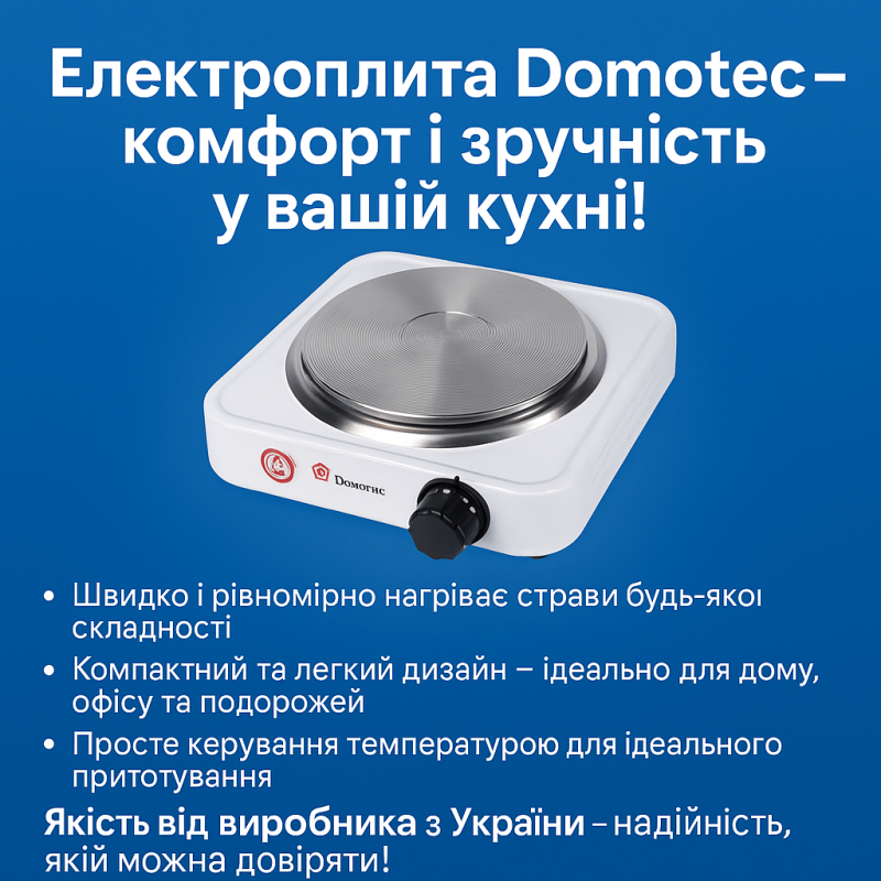 Електроплита настільна DOMOTEC MS-5821 (дискова на 1 конфорку/1Д), маленька переносна електроплита