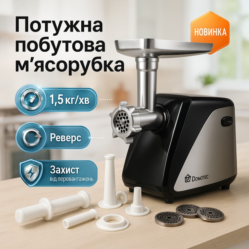 | Назва | Электрическая мясорубка Domotec MS-2022, электромясорубка для дома для домашней колбасы |