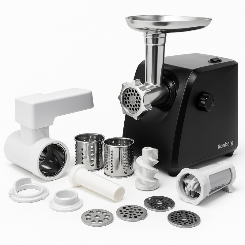 Мясорубка Rainberg RB-673 3000 Вт - это ваш надёжный напарник и помощник на кухне. Качественная и доступная по своей стоимости модель электрической мясорубки от китайской фирмы Rainberg предназначена для приготовления домашнего фарша из мяса различных видов, овощей, рыбы, а также грибов, терками и шинковкой