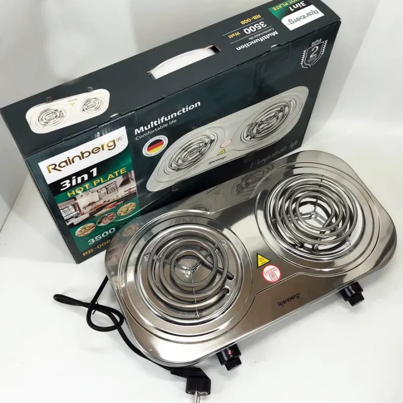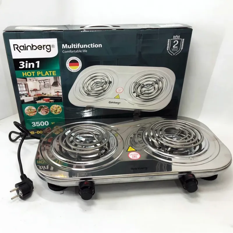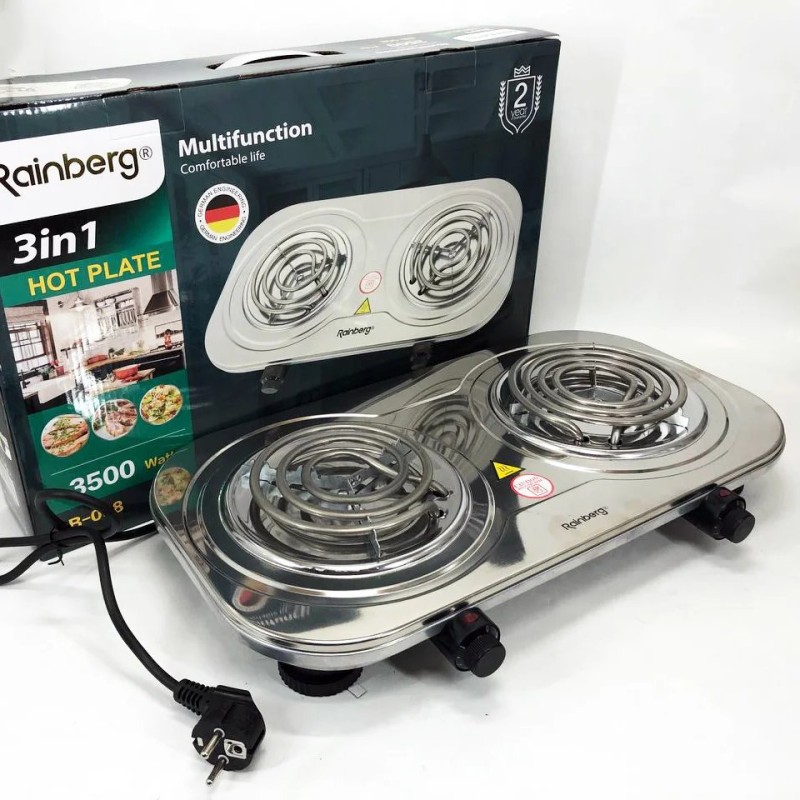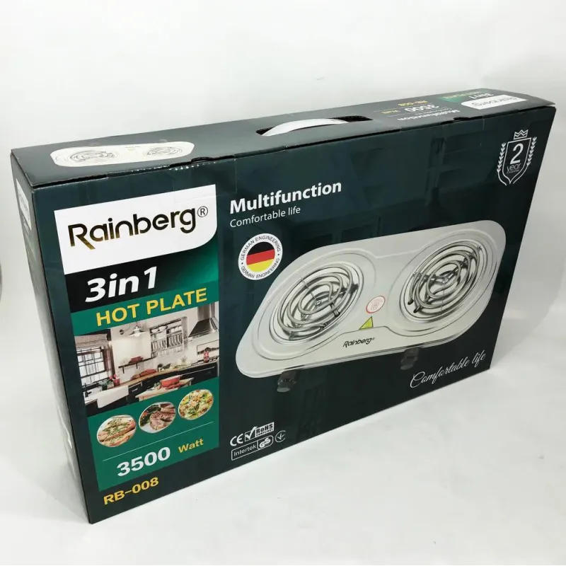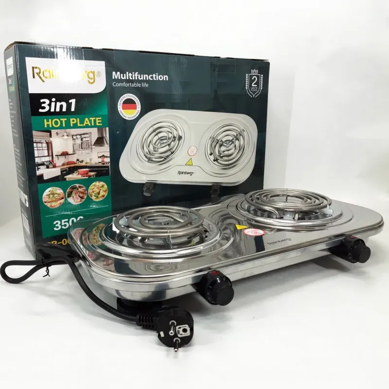 Электрическая плита Rainberg RB-008 на 2 поверхности спиральная + 2 регулятора 3500 Вт можна замовити в інтернет-магазині Shtyrman. Перевіряйте модель, виробника, наявність і характеристики перед покупкою.