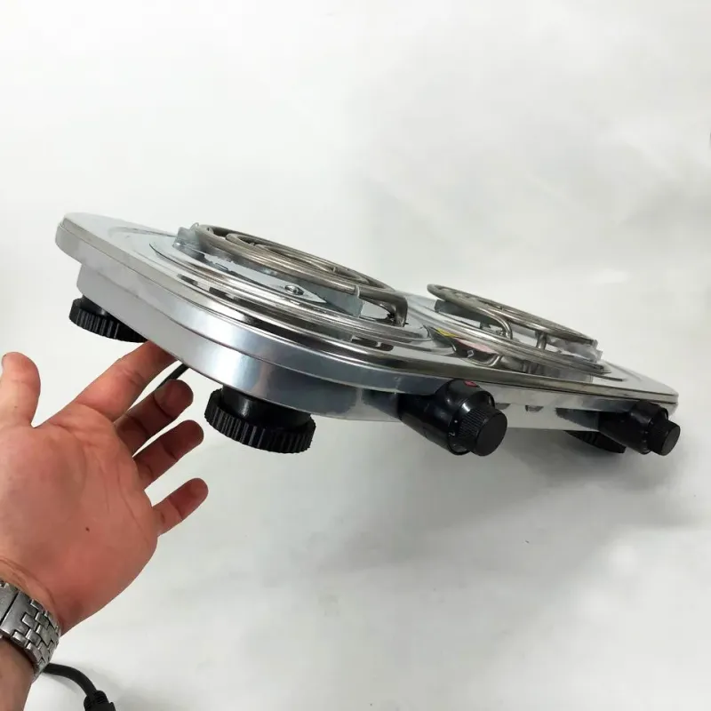 Открытые нагревательные спирали, каждая мощностью в 3500Вт, обеспечивают мгновенный разогрев и быстрое приготовление пищи дома и на даче. Встроенные термостаты поддерживают заданный режим приготовления пищи. Пять режимов мощности для каждой конфорки.