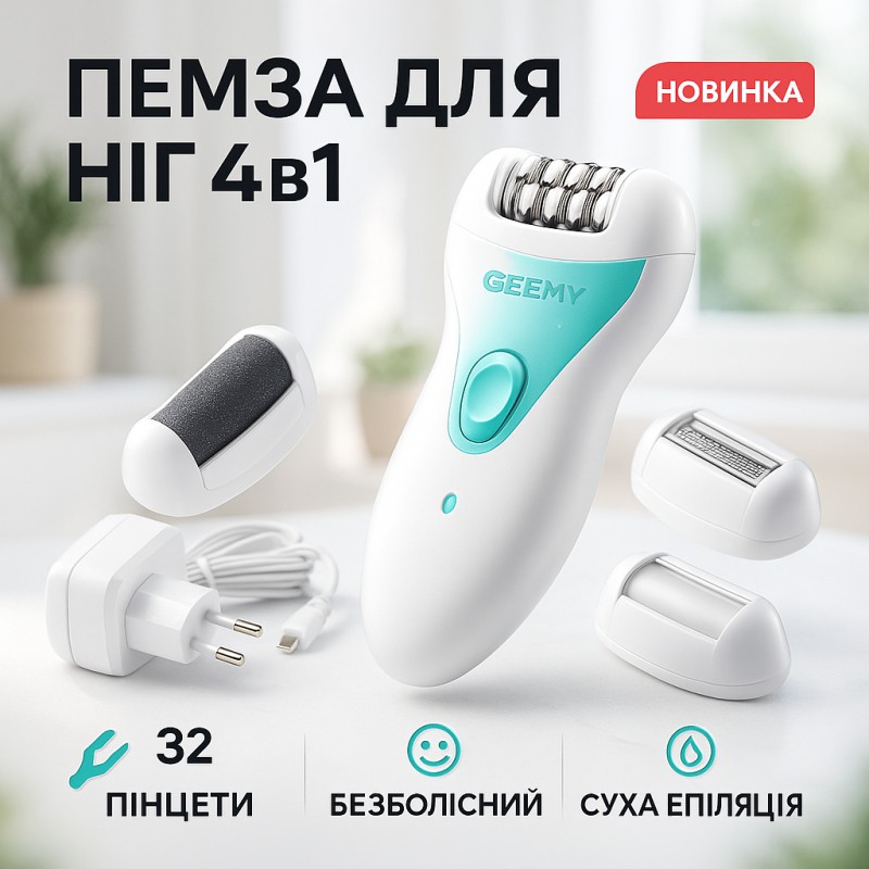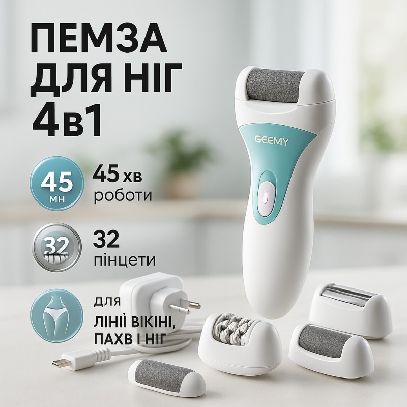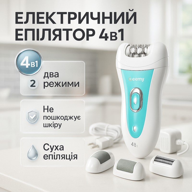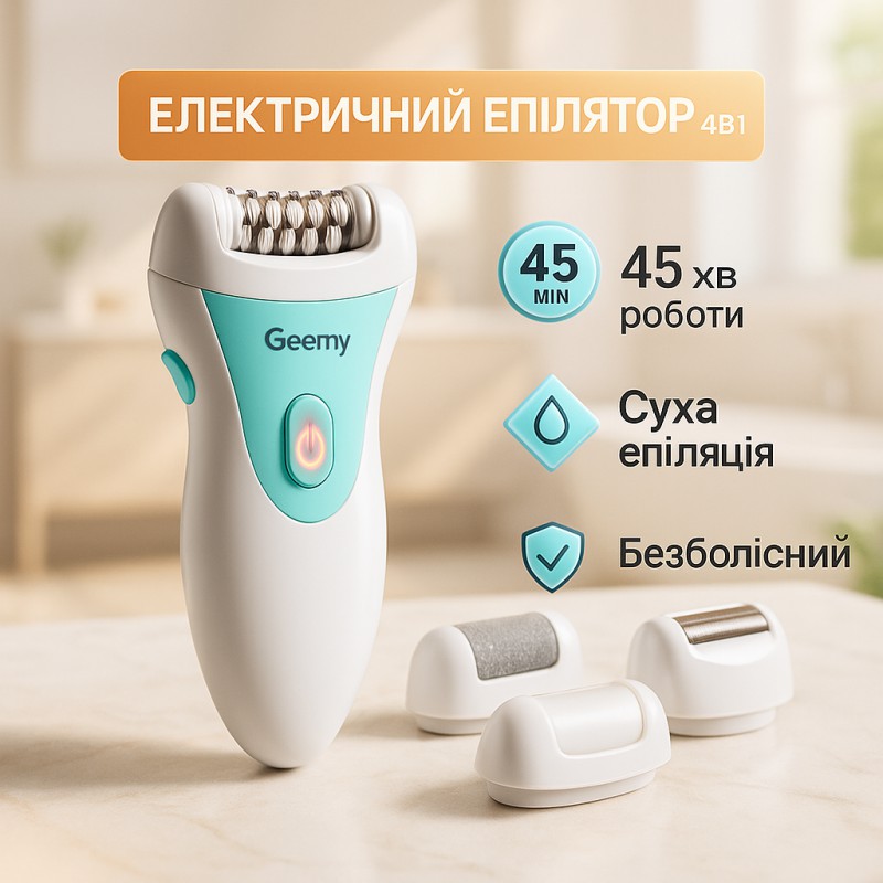 Эпилятор Gemei GM-7006 4в1 - це універсальний інструмент для догляду за шкірою. З його допомогою ви зможете зробити епиляцію, підстригти волосся, видалити пемзу та зробити інші процедури.
