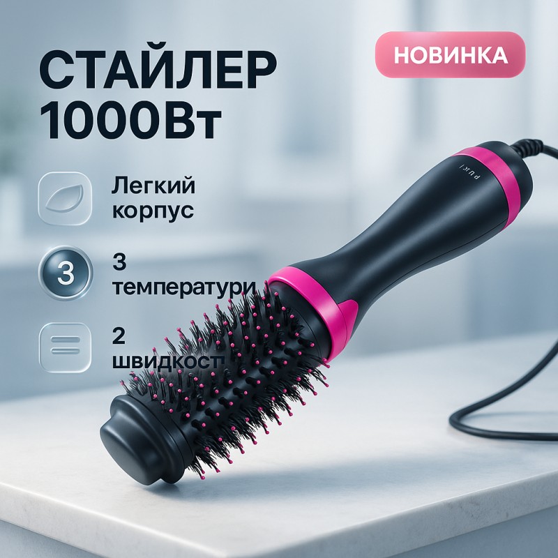 Фен щетка 3в1 - це революційний інструмент для укладки волосся. Він поєднує в собі функції фена, щетки та випрямителя, що дозволяє швидко і легко укладати волосся без додаткових пристроїв.