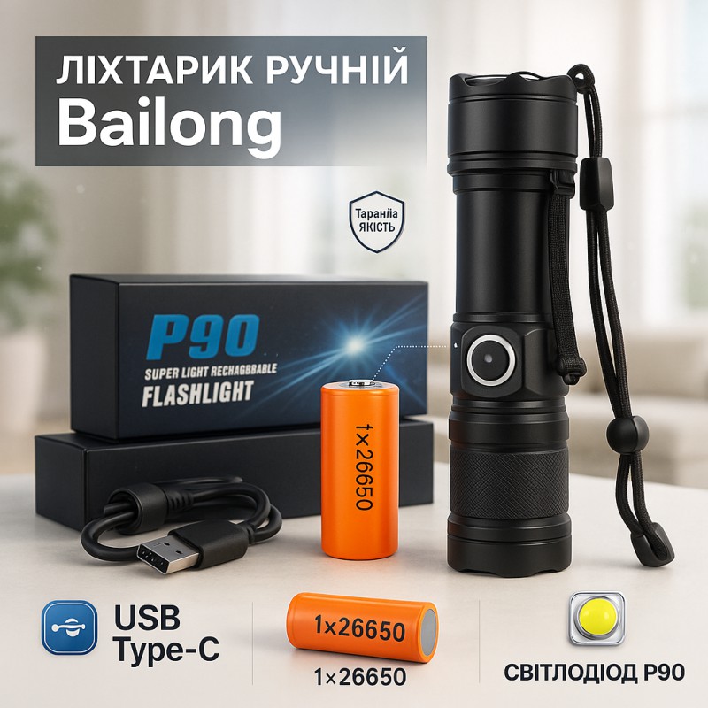 | Назва | Фонарик ручной Bailong BL-A75-P90, фонарик полис, фонарик bl, фонарик светодиодный для туриста |