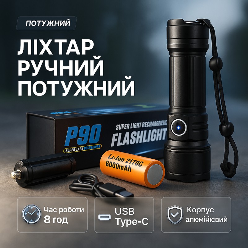 Ручной фонарь BL-A75-P90, станет крайне удобным помощником, как в быту, так и в условиях города, похода, экстренных отключений электричества из-за увеличенного потенциала мощности в виде сильного светодиода P90, и емкого аккумулятора в 8000mAh (по заявлению производителя).