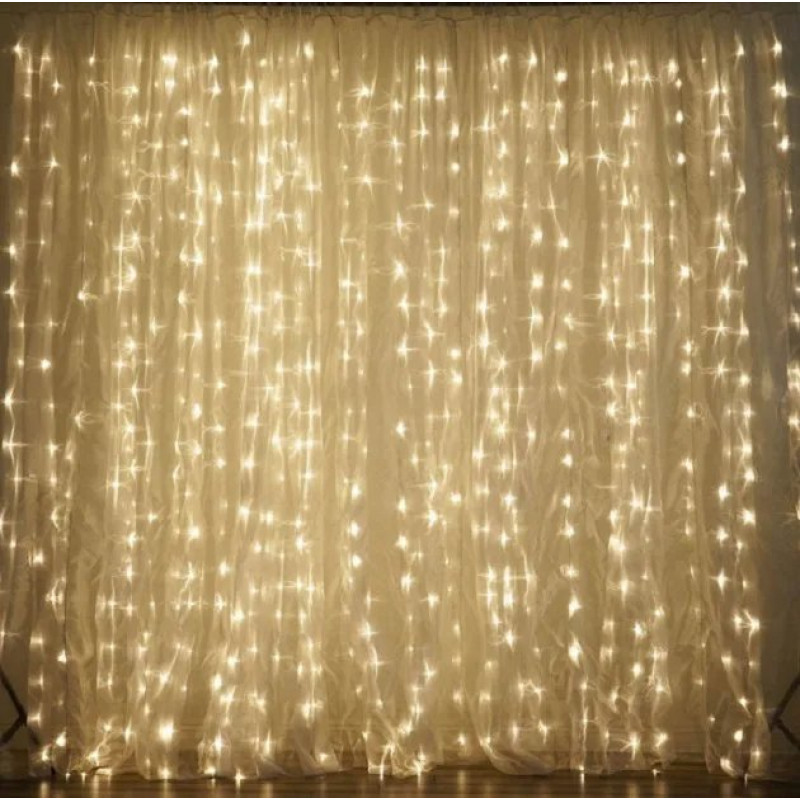 | Назва | Гірлянда-штора 300 led WW-9 Теплий Білий 3M*3M на мідному дроті+з'єднувач |