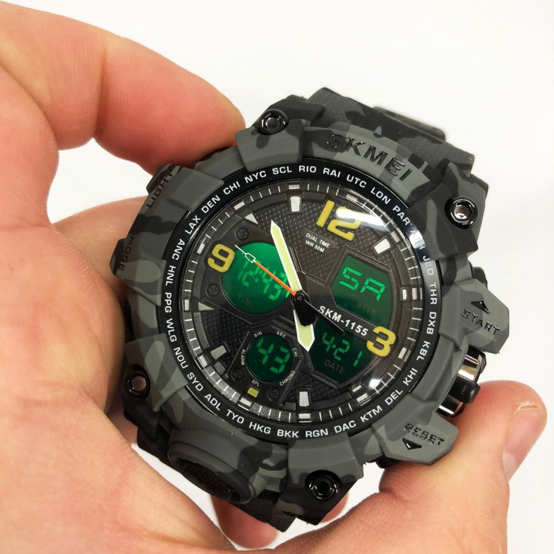 Годинник наручний чоловічий SKMEI 1155BCMGY, армійський годинник протиударний. Колір: сірий камуфляж можна замовити в інтернет-магазині Shtyrman. Перевіряйте модель, виробника, наявність і характеристики перед покупкою.