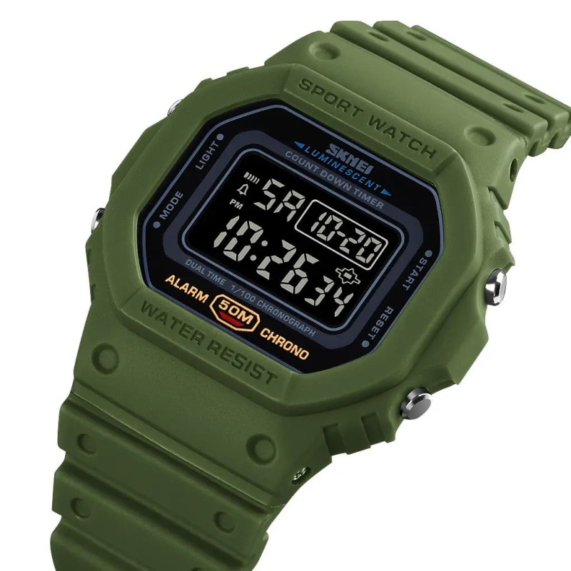 Годинник SKMEI 1628AGBK — це надійний цифровий аксесуар у військовому стилі, який поєднує практичність і лаконічний дизайн. Модель виконана в кольорі хакі з матовим корпусом і ремінцем, що додає брутальності і робить її ідеальним вибором для активного способу життя або військових стилізацій. Великий екран забезпечує легке зчитування інформації навіть у складних умовах.