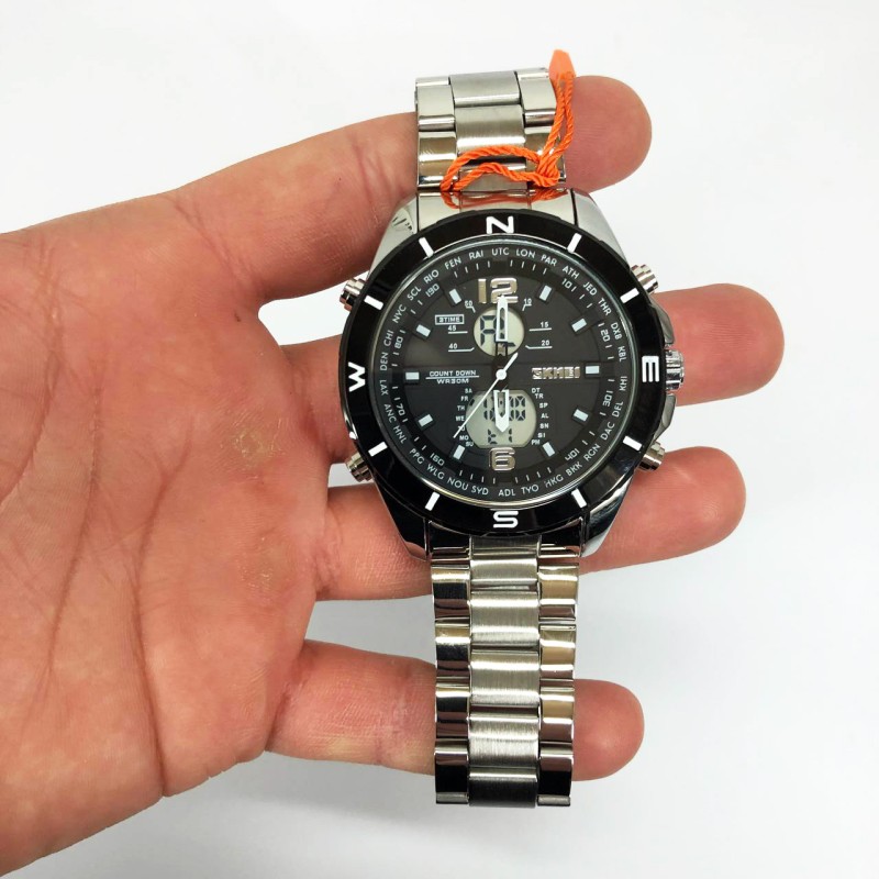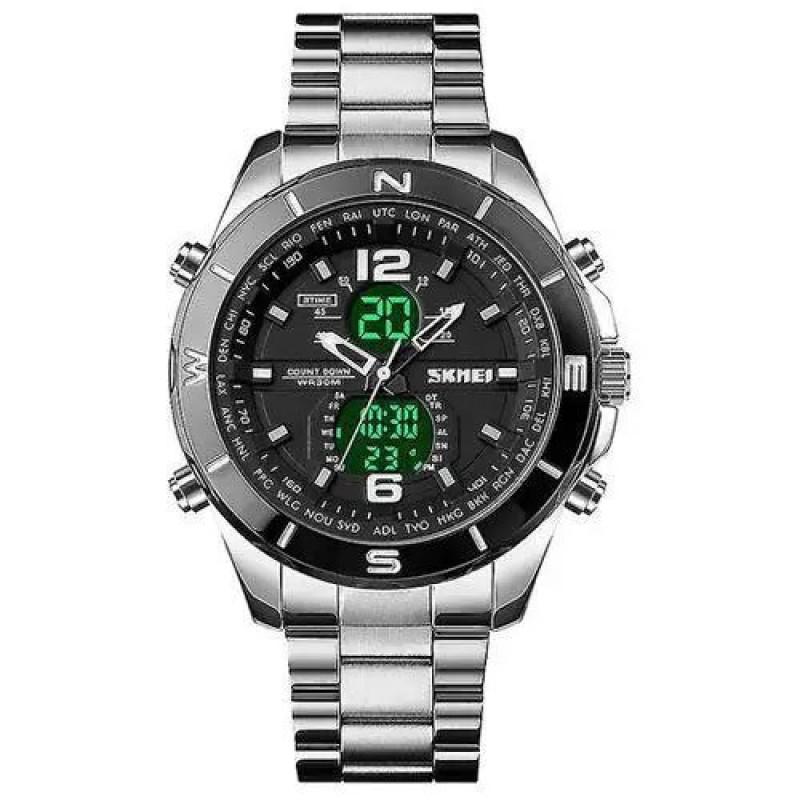 SKMEI 1670SIWT поєднує в собі класичні стрілки та сучасні цифрові функції, серед яких подвійний час, будильник, секундомір, дата, день тижня, таймер, підсвітка, автоматичний календар. Завдяки водозахисту до 50 метрів годинник стійкий до дощу, миття рук і незначного контакту з водою. Це стильний аксесуар, який вдало доповнить образ і стане практичним помічником кожного дня.