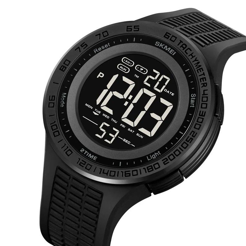 SKMEI 2155BKBK — це спортивний цифровий годинник, який поєднує у собі агресивний дизайн і широкий функціонал. Модель виконана у повністю чорному кольорі з масивним корпусом та зручним ремінцем із текстурованою поверхнею, що забезпечує надійну фіксацію на зап’ясті навіть під час інтенсивних тренувань. Чіткий дисплей з великими цифрами дозволяє швидко зчитувати інформацію з першого погляду.