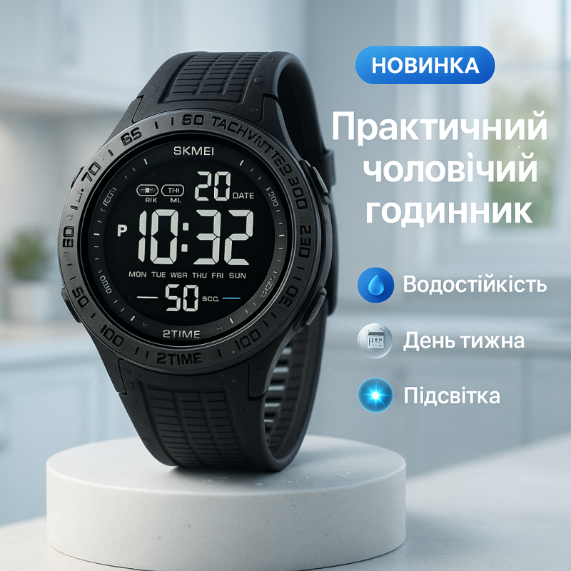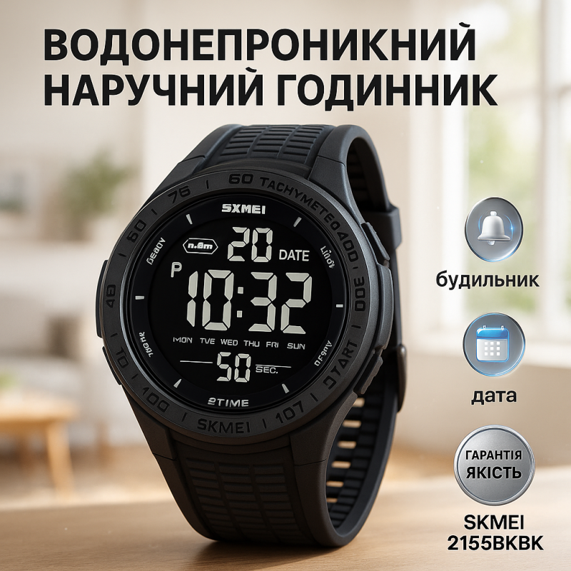 Цей годинник орієнтований на активних користувачів: він має функцію другого часового поясу, таймер, будильник, підсвічування та секундомір. Водозахист до 50 метрів дозволяє використовувати SKMEI 2155BKBK у будь-яких погодних умовах і навіть під час плавання. Це чудове рішення для тих, хто шукає витривалий і практичний аксесуар на кожен день.