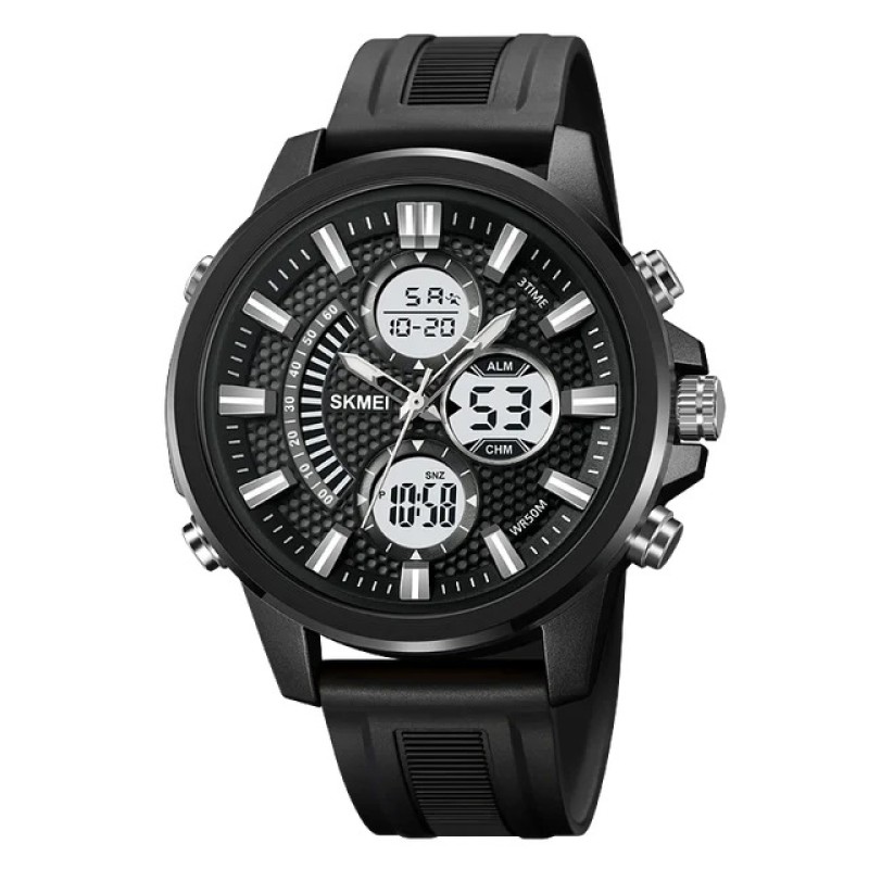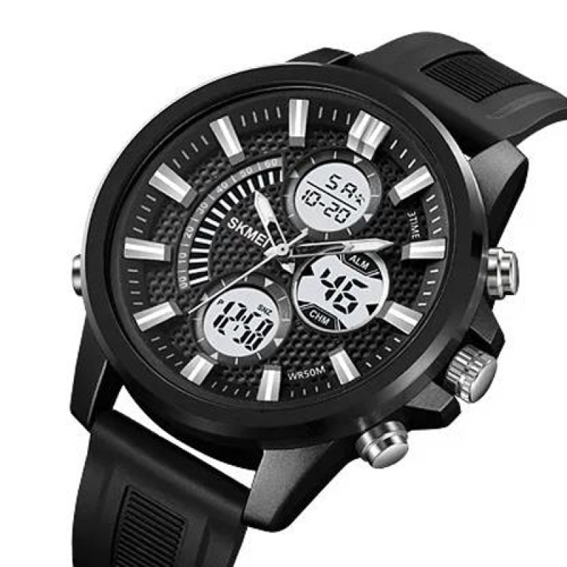 Наручний годинник SKMEI 2235BKWT — це сучасна модель із поєднанням аналогового та цифрового відображення часу. Стильний чорний дизайн із масивним корпусом виглядає солідно та підходить як для повсякденного використання, так і для активного способу життя. Контрастні індикатори та багатофункціональний циферблат забезпечують зручне зчитування інформації.
