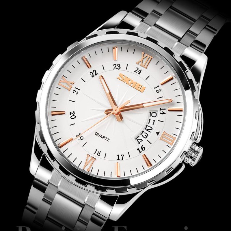 SKMEI 9069SIRG — це витончений чоловічий годинник, який поєднує елегантність класичного стилю та сучасну функціональність. Сріблястий сталевий корпус і браслет доповнені білим циферблатом з витонченими римськими індексами кольору рожевого золота, що надає моделі розкішного, але стриманого вигляду. Цей годинник стане ідеальним аксесуаром як для ділового костюма, так і для smart-casual образу.