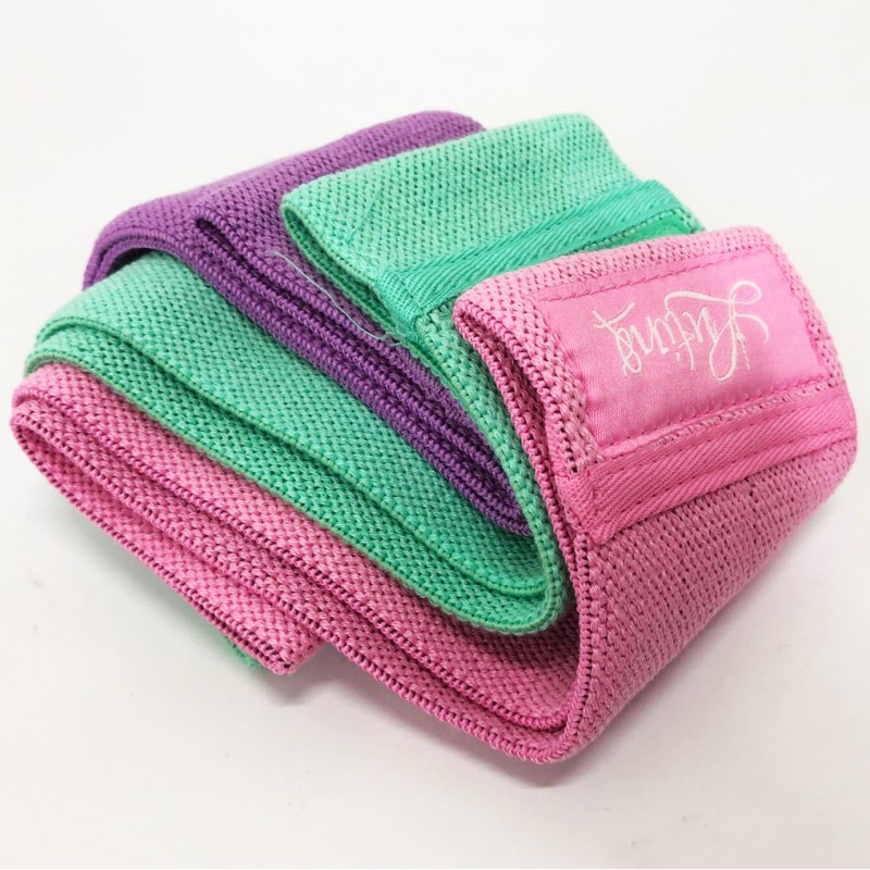 У набір входить 3 яскраві резинки тканини різного рівня опору: легкий (зелена) є самою «слабкою» серед інших, володіючи силою натягу 10-15 кг; середня (рожева): середня тканинна гумка здатна похвалитися підвищеним рівнем опору, витримуючи 15-20 кг; важкий (фіолетова): найсильніша серед гумок і має силу натягу в 20-25 кг.
