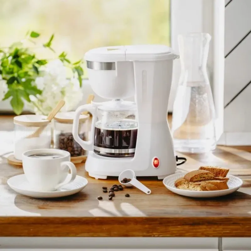 Стеклянный кувшин с удобной эргономичной ручкой обеспечивает комфорт при использовании, а функция поддержания температуры позволяет наслаждаться тёплым кофе до 40 минут после заваривания. Устройство оснащено защитой от перегрева и системой блокировки капель для безопасного использования.