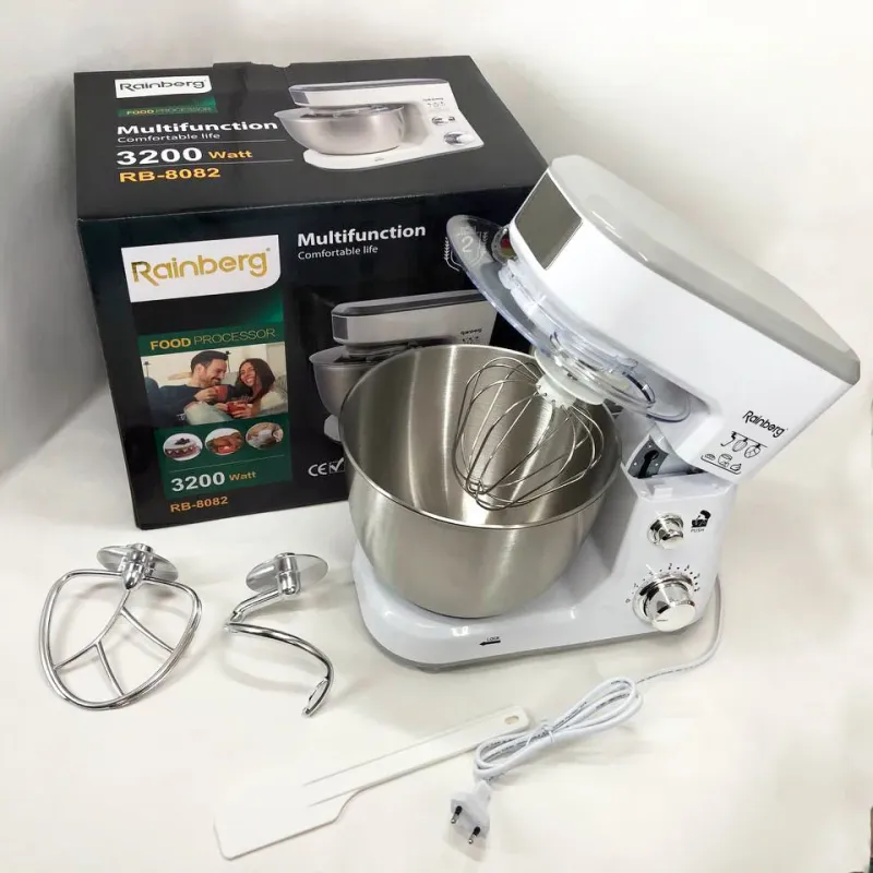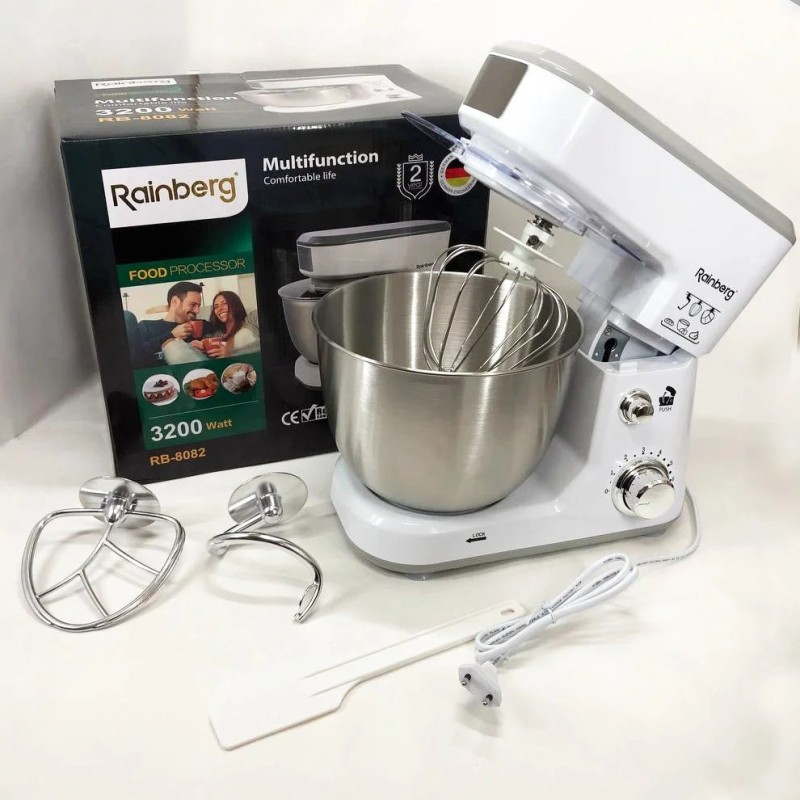 Кухонный комбайн миксер тестомес планетарный многофункциональный 3200Вт 5л Rainberg очень прост и удобен в применении, вскоре вы не сможете обходиться без кухонного комбайна на кухне.