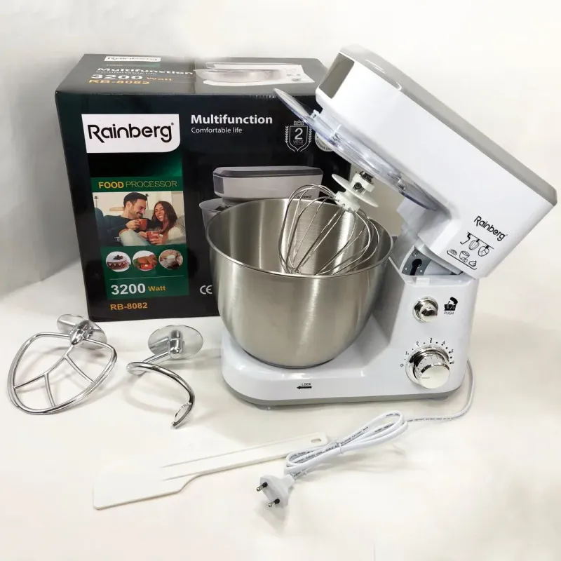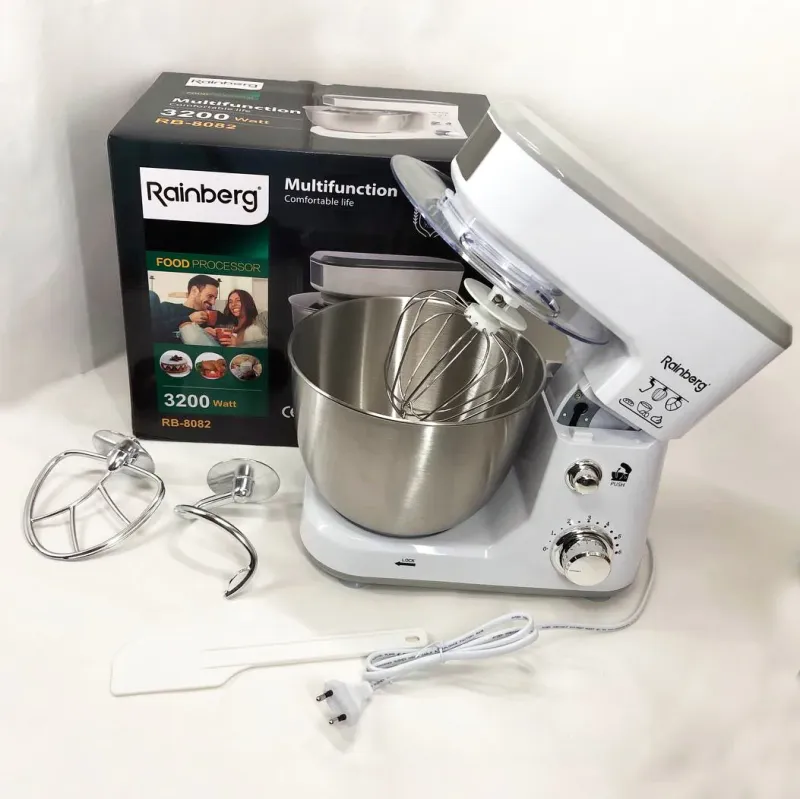 Кухонный комбайн Rainberg RB-8082 3200 Вт, Планетарный миксер-тестомес с чашей 5л, 3 насадки, 6 скоростей можна замовити в інтернет-магазині Shtyrman. Перевіряйте модель, виробника, наявність і характеристики перед покупкою.