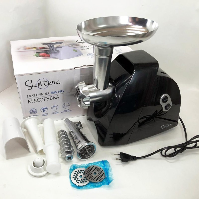 | Назва | М'ясорубка Suntera SMG-5425B, електрична м'ясорубка з насадками, електром'ясорубка для шатківниці |