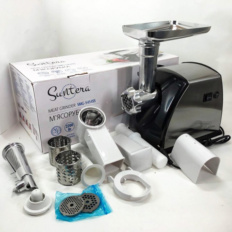 М'ясорубка Suntera SMG-5454SS, М'ясорубка електрична метал, М'ясорубка-соковижималка можна замовити в інтернет-магазині Shtyrman. Перевіряйте модель, виробника, наявність і характеристики перед покупкою.