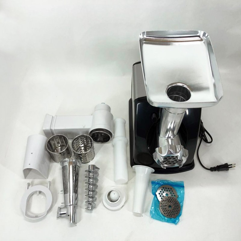 • Насадки у комплекті: диски для фаршу, домашніх ковбас, кеббе, шинкування/терки
